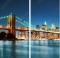 Obraz dwuczęściowy - Dyptyk: Most Brooklyński w nocy