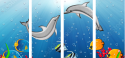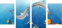 Obraz czteroczęściowy - Fortyk: Wesołe delfiny płatające figle
