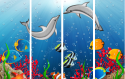 Underwater world with dolphins and tropical fishes