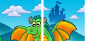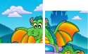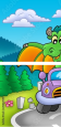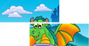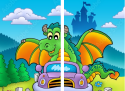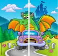 Obraz dwuczęściowy - Dyptyk: Zielony smok jazdy samochodem