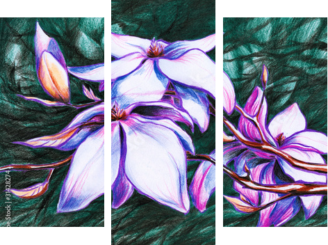 Magnolia - przemijający czas - Obraz trzyczęściowy, Tryptyk
